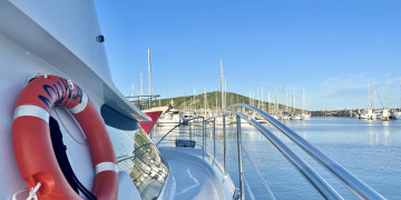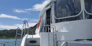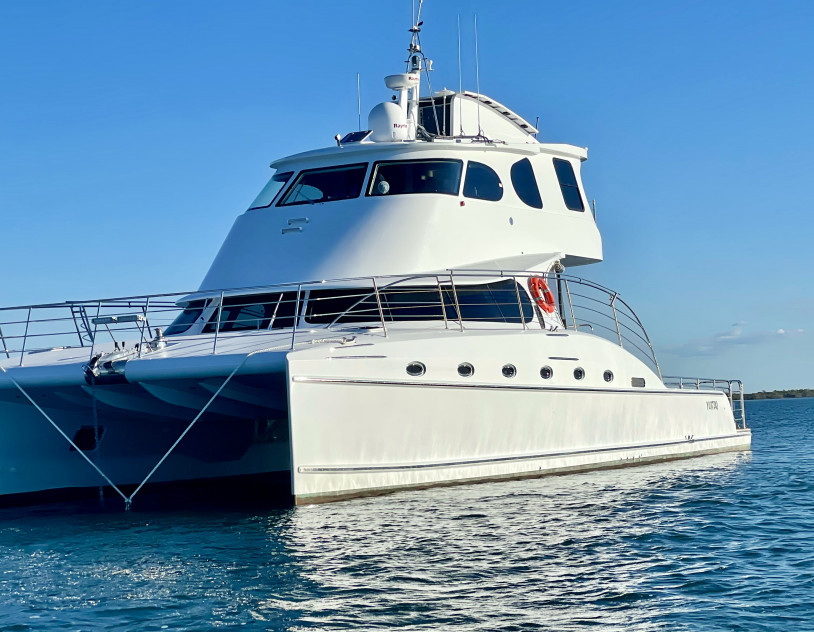 The space is an 18 metre luxury 4 million dollar custom built one of a kind catamaran. With 3 berths, full kitchen, 2 luxurious seating/eating areas and large dive platform and seating up the front of the boat with a sundeck. It is on 3 floors with a bedroom upstairs with a full balcony.
