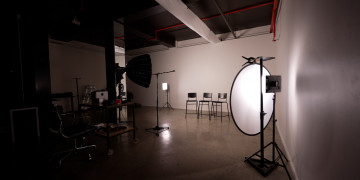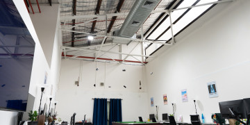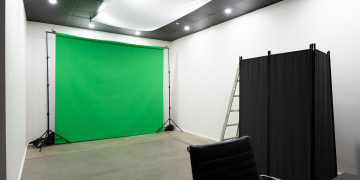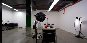 This co-working space has been designed to meet the needs of individuals operating across creative industries. The 188 sqm facility houses a photography studio with green-screen backdrop, open-plan film studio, podcast recording room, screening/review station, 8 large workstations and recreational spaces. The photography studio is a 3.7 x 6.4m space with adjustable diffused overhead lighting, backdrop rolls including chroma key/green screen, change room, clothing rack, and hair & makeup desks.