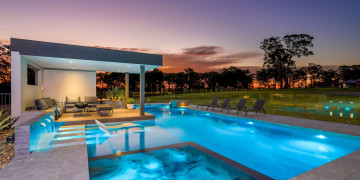 Set on six acres, this spectacular home mixes a rural farmland backdrop with a contemporary and modern house and entertainment area to provide a unique and spacious set for large film crews. The property’s main feature is the 15 metre long resort style pool, complete with cabana and heated spa.