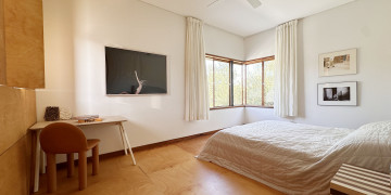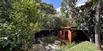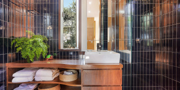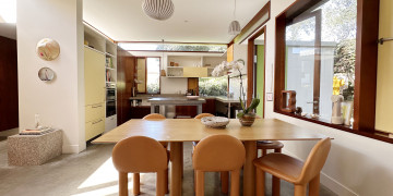 Innovatively designed to maximise the north aspect in sunlit interiors with high ceilings, plywood finishes and sustainable elements, the property is set in a prized enclave close to Bondi Beach. Large open outdoor areas feature a sunny dining platform as well as a children's modern cubby surrounded by native fauna.