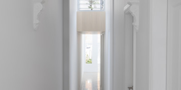 Banksia House is a serene blend of heritage architecture and modern design, thoughtfully composed to embrace light, nature, and space. Framed by a graceful heritage archway, the view extends to a striking Banksia tree perched above a rooftop garden, marking a poetic transition from the original structure to a bright, contemporary extension.
