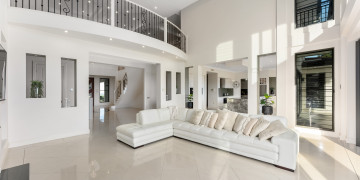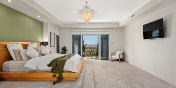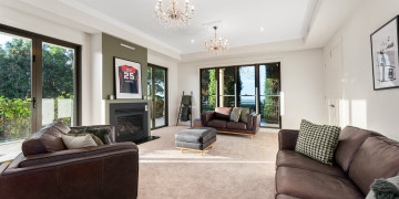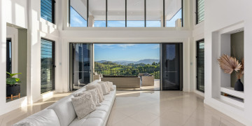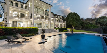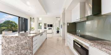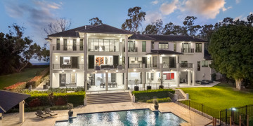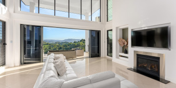 Across seven spacious bedrooms and six bathrooms, the interiors are light filled, open and impeccably finished throughout. The grand chef's kitchen features a granite waterfall island, gloss white cabinetry, double ovens and seamless flow into the open plan living areas and out onto the balconies. Every level of the estate opens to the landscape, with multiple indoor and outdoor entertaining areas capturing the views from every vantage point.