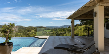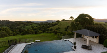 Outside, the infinity pool sits suspended above the natural landscape, surrounded by manicured grounds, open paddocks and the quiet of the mountain. The property is completely secluded, with ample onsite parking and easy access for production vehicles and crew.