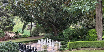 Adding further charm, the estate features a Chess Garden with oversized pieces, a wishing well, and a rustic timber shack with a porch suspended over the dam. Resident birdlife and the ever-changing seasonal beauty of the gardens enhance its cinematic and timeless appeal.