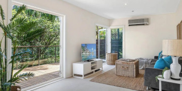 Additional features include modern bathrooms, ample storage, air conditioning, an integrated sound system, and off-street parking for two cars. Set back from the street, Bilgola Bliss offers both privacy and access to stunning rainforest walking tracks, making it a prime spot for capturing natural beauty and sophisticated coastal living.