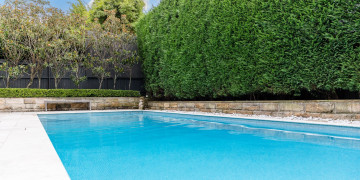 The outdoor area is equally captivating, featuring travertine floors and an impressive 11m pool surrounded by lush hedges, creating a serene, private retreat ideal for outdoor shoots. The expansive garden, with its traditional leafy landscaping and a spacious 25m x 6m enclosed lawn, offers abundant space for staging or capturing tranquil scenes.