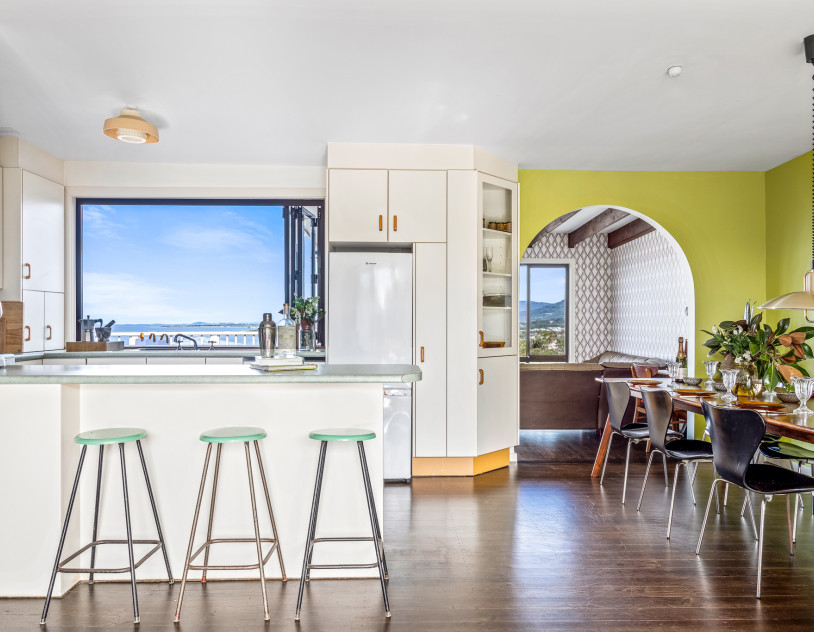 Nestled in a quiet, leafy cul-de-sac, Bobbi is the perfect location for your next production, offering a visually stunning backdrop with its retro-fitted design and panoramic ocean views. The two-level home provides a range of unique settings, from expansive balconies showcasing 180° water vistas to spacious, open-plan living areas furnished in a funky retro style. The large pool, fire pit, and outdoor BBQ area add depth to outdoor scenes, while multiple indoor and outdoor spaces ensure versatility for filming or photoshoots. Whether you're shooting a commercial, film, or photoshoot, Bobbi provides an inviting and distinctive setting to bring your creative vision to life.