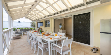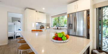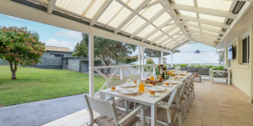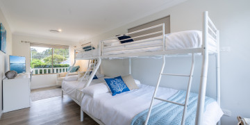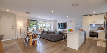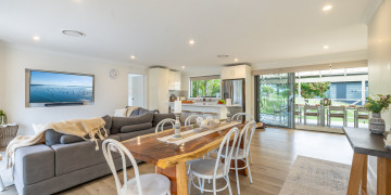 Bon Bay is a classic Aussie beach house with a modern facelift. The north facing front deck accompanied by the lemon yellow weatherboards and bright-white Hampton-style handrails, welcomes you into the open plan living, dining & kitchen area. Boasting 4 large bedrooms with varying bed types, the property has ample space with 2 separate bathrooms. The large backyard and entertaining patio includes built-in gas BBQ, outdoor television, and an enormous lawn yard with lockable garage and parking. Bon Bay offers a simplistic, inviting backdrop for your next creative project!