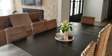 For indoor shoots, start with the living area and fireplace, which boasts a beautiful stone feature wall. Capture this feature with natural light during the day to highlight its warmth and texture, and for evening shots, use soft, ambient lighting to emphasise the cozy feel. In the kitchen, the 3m 80mm Concrete Snow island stands out as a central feature. Bright, natural light or well-placed artificial lighting will showcase the sleek, modern surfaces effectively.