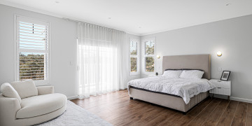 For the master bedroom, focus on the balcony view, open-plan walk-in robe, and the luxurious bathroom. Soft, diffused lighting will help create a serene and elegant atmosphere, and capturing natural light through the windows will enhance the room’s bright and airy look.