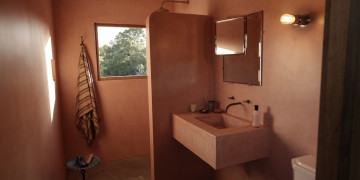 This bespoke cabin on 11 picturesque acres situated between the rural surf side town of Brunswick Heads and Mullumbimby is a modern marvel. With two bedrooms, one bathroom and a fully equipped kitchen opening out to the living and dining space, it features French Oak timber floors and open fireplace. The bathroom's unqiue Spanish style features a Venetian plaster finish and designer hardware.