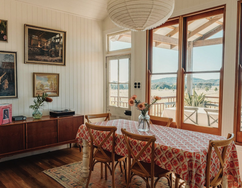 Set on 33 acres, Cattleman’s Rest is an off-grid 1900s Queenslander with timeless rustic charm and a creative edge. Relocated by truck nearly five years ago, this vintage homestead has been lovingly restored to retain its character while reimagined for modern open living with soaring ceilings and expansive light-filled spaces.