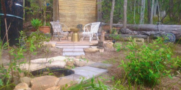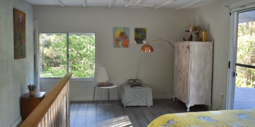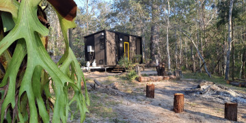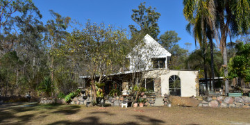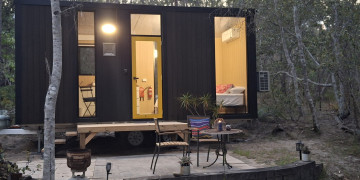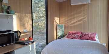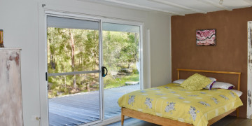 The property’s centrepiece is a charming sandstone-and-corrugated-iron cottage that blends French, Mediterranean, and contemporary Australian influences. This two level home features polished concrete floors, bi-fold windows, and one bathroom—balancing rustic character with modern style. A tiny house adds extra accommodation, while photogenic details throughout the land create endless staging opportunities.