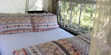 Unique on-site additions—including a vintage 10.5m Isuzu bus, a retro caravan, and a natural stone cottage with French-Aussie flair—further enrich the property’s creative potential.