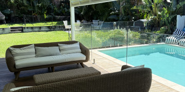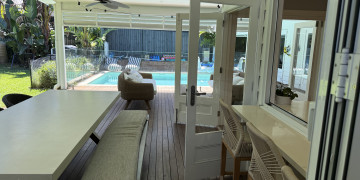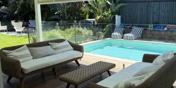 Outdoors, a covered entertaining area extends the living space, overlooking a heated pool set within established gardens. This private, resort like setting offers a range of shoot opportunities, from relaxed alfresco scenes to more elevated poolside moments, all within a cohesive and considered environment.