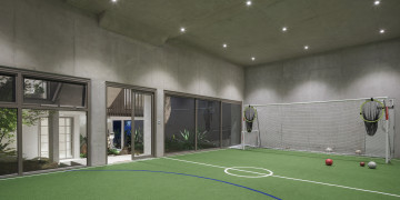 A private indoor soccer field, ideal for leisure or activation, sits alongside generous indoor-outdoor living zones designed for refined entertaining. The expansive outdoor dining pavilion, surrounded by manicured gardens and framed by water views, offering the perfect stage.