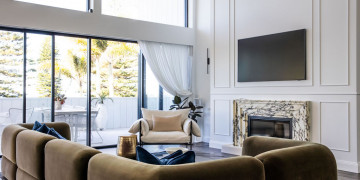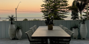 Welcome to La Dolce Vita, an exquisite two-story retreat on Sydney's Northern Beaches, seamlessly blending island colonial charm with modern Australian coastal elegance. Inside, natural light floods the expansive interior, highlighting the grand spiral staircase crowned by a circular skylight. The open-plan second-floor living area boasts high raked ceilings, triangular highlight glazing, and sliding doors opening to a balcony with ocean views. A Calacatta Viola marble fireplace and wainscoting add sophistication. The property caters to entertainment and relaxation with amenities like a bold green and white striped magnesium swimming pool, home gym, sauna, and outdoor golf cage. The chef's kitchen features Calacatta Viola marble countertops and a butler's pantry, perfect for culinary scenes. With four luxurious bathrooms including a primary ensuite with a double shower and skylight, a second bathroom with a Tiffany blue palette and egg bath, all of which feature natural stone throughout. This property combines island colonial and coastal styles with European-inspired details, creating an inviting atmosphere. Ideal for filming, photography and events, it offers versatile settings from intimate indoor scenes to outdoor sequences overlooking the ocean.