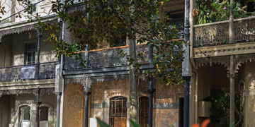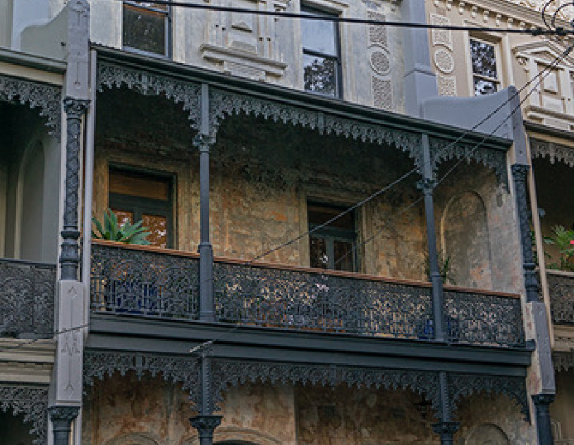This beautiful grand Victorian Terrace, built in 1888, is the centrepiece of a row of 15 in the historic precinct of Hollis Park, Newtown The layout is original, with tessellated tiles from Stoke on Trent in the 1.4m width hall, leading to the vestibule at the rear of the home. The living room receives morning light from the bay window. High ceilings soar to 3.4m in the living and dining rooms, both of which are graced with superb marble mantelpieces surrounding the fireplaces. The kitchen is eclectic, with wide marble bench tops, plus ample room for a vermilion ovum shaped table.