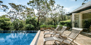 This stunning villa, a classic gem from the 1930s, is located within walking distance of the picturesque Whale Beach along the Pacific coast, north of Sydney. Perched gracefully on a hillside, the villa boasts breathtaking views of Pittwater and features expansive outdoor living spaces. The four-story sandstone residence, which accommodates up to eight guests across four elegantly appointed bedrooms, is just minutes away from some of the finest beaches, golf courses, and dining experiences in the exquisite region of New South Wales.