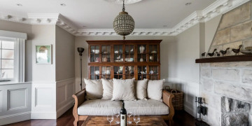 Inside, the villa harmoniously blends antique charm with modern amenities. The interiors feature finely restored details, fresh paint finishes, high-end appliances, and rustic accents in the furnishings. Hardwood floors throughout enhance the elegant yet welcoming atmosphere of the home.