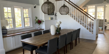 This architect-designed Hampton's style beach house with incredible views of Sydney Harbour from all three levels is an absolute stunner. This spacious location features 6 bedrooms, white on white modern kitchen and bathrooms plus a study/living area. Classically curated interiors feature nautical tones, rattan accents and ocean inspired items throughout.
