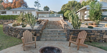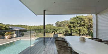 Outdoor living at Nineball is nothing short of spectacular. A covered spotted gum deck extends from the house, offering an elevated view of the mineral-based pool, framed by a stunning cactus garden and handmade stone walls. The seamless flow from indoor to outdoor spaces makes it a dream location for lifestyle shoots and alfresco entertaining.