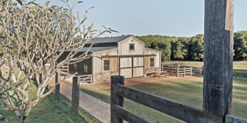 Adding to Nineball’s unique character is a one-of-a-kind barn, crafted from reclaimed materials and exuding rustic sophistication. Featuring authentic stables and a bespoke whiskey bar, the barn is a versatile space, ideal for film productions, brand campaigns, or private events. Beyond the barn, rolling paddocks, a rustic chicken coop, and a tranquil creek weave through the property, enhancing its timeless appeal.