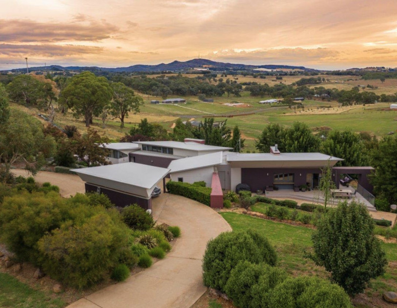 Orange Horizon is an architecturally designed masterpiece, perched atop a ridge to capture breathtaking views of the valley below. This stunning 14-year-old home sits on 7 picturesque acres, where the natural beauty of the landscape is complemented by the occasional visit from kangaroos, offering an authentic and serene Australian setting.