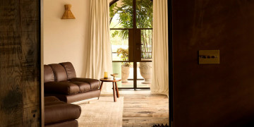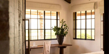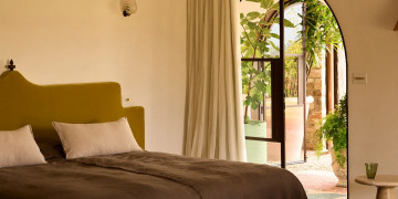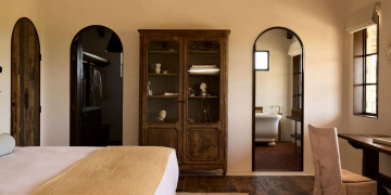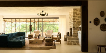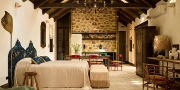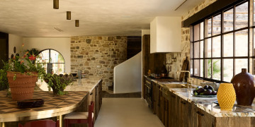 The main farmhouse is a testament to understated opulence, meticulously appointed with the highest quality materials, fittings, and furnishings. Solid stone walls and 100-year-old hardwood floors showcase artisanal techniques honed over generations, while curated Italian furniture and bespoke Tigmi Trading pieces add layers of texture, history, and soul. From the stunning brass kitchenette to hand-selected vintage accents, every detail has been carefully considered to deliver a space that is both luxurious and deeply evocative.