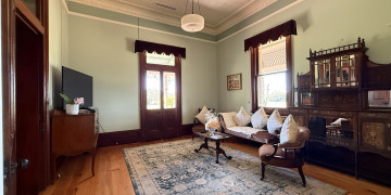 The homestead presents in the free Italianate style, with a classic bullnose wrap around verandah framing uninterrupted views of the surrounding ranges. Inside, the character is immediate and authentic: pressed steel ceilings, kauri pine floorboards and cedar skirting boards speak to a craftsmanship and era that simply cannot be replicated. Every room offers a quality of light and texture that production teams and photographers return to again and again.