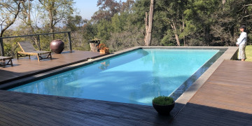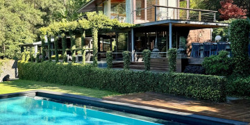 A separate, self-contained, resort-like guest cabana ( 3rd bedroom) and sauna spills onto the extensive deck, pool (25m) and lawn areas.