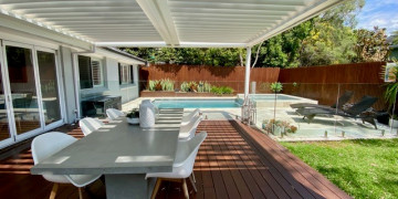Seamlessly extending outdoors, the expansive backyard deck and BBQ area lead to a level lawn with an in-ground pool and spa, offering a versatile setting for family and lifestyle scenes.