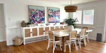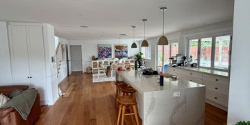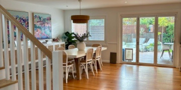 Fully renovated in 2025, The Hampton is a light filled two-storey family home featuring five bedrooms, three bathrooms, and two generous living areas. The centrepiece of the home is a spacious open plan kitchen, dining, and living area, finished with warm American Oak flooring and large windows that fill the space with natural light.