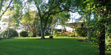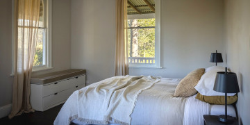 Inside, the home features original open fireplaces, stunning wide floorboards, 10-foot ceilings, and French doors that spill out to 3-metre verandas wrapping the residence. Every room offers natural texture, warmth, and historical detailing that reads beautifully on camera, while the updated kitchen and generous living spaces provide practical comfort for crew, talent, and production setups.