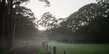 Tucked away in a serene cool-climate rainforest, The Roost presents an idyllic backdrop that highlights the beauty of nature. Surrounded by lush, green paddocks and pristine bushland, it's an ideal location for photography, film shoots, events, or activations. The landscape is a captivating blend of misty mornings, sunlight filtering through tall trees, and expansive pastures teeming with birds and native wildlife. The charming two-story cottage on the property is sleek and stylish, featuring three bedrooms, one bathroom, and a cozy yet modern atmosphere.