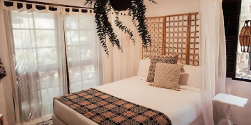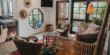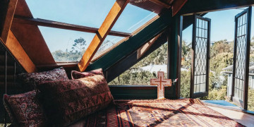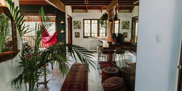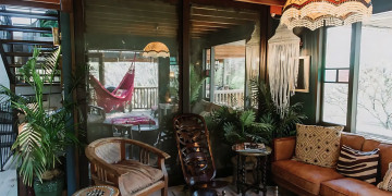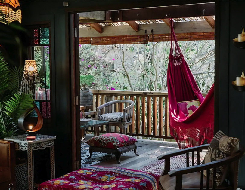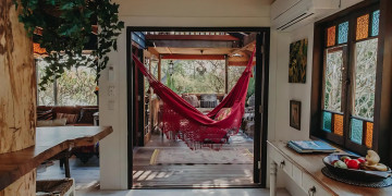 Tropicalia's unique hammock is a standout feature, providing a perfect spot for capturing serene and relaxed moments amidst the lush greenery visible through the large windows. Additionally, the gorgeous attic nook offers a tranquil space for meditative or reflective shots.