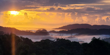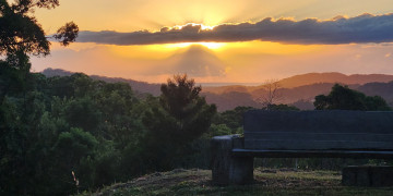 The landscape is rich and layered. Rainforest trails lead to a private creek and natural rock waterfall, while elevated ridgelines reveal sweeping views across the Pacific Ocean. At golden hour, the property transforms with soft, cinematic light across the surrounding hills and forest canopy.