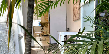 Enjoy direct street access and the flexibility to rearrange or remove artworks and props effortlessly. Skylights can be blocked for studio lighting, and the plant-filled courtyard, accessible through frosted glass doors, adds a touch of greenery.
