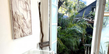 Discover a unique 100sqm warehouse space in inner Sydney, ideal for art galleries and studio work. Bathed in natural light from skylights, front, and rear, this space features high ceilings, white walls, and a wooden detailing that adds character.