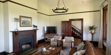 This historic location est. 1823, is one of the oldest properties in Central West NSW. The beautiful fully renovated homestead is stylishly furnished to compliment the age, elegance and charm of the property. The homestead whispers romance with the stunning red cedar staircase and timber panelling still in original condition. Beautiful fireplaces, high ceilings crowned with intricate cornices and gorgeous polished timber floorboards feature throughout. Thoughtfully curated antique furniture adds a touch of sophistication and charm.