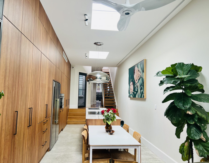 This charming, modern recently renovated terrace located in the leafy inner-city suburb of Erskineville offers a unique blend of modernity and Victorian charm. Designed to maximise natural light with an abundance of windows, architectural lighting has been used to enhance the main living and dining areas. The stunning kitchen is the focal point with a large stone island countertop and a designer stainless steel accents.