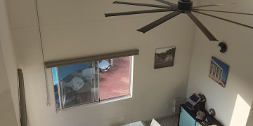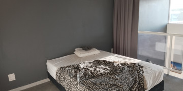 The mezzanine-level bedroom offers a cozy escape with stunning views of the harbor—illuminated beautifully at night—and is accessible by a bridge overlooking the living space below. With eastward-facing windows, Hugo provides breathtaking sunrises, while blinds can be drawn to create a more enclosed, intimate ambiance.