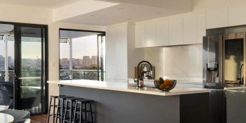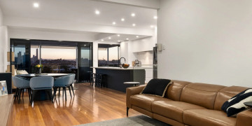 At its core, the home centres around an open-plan living and kitchen space, where expansive glazing frames the ever-changing city outlook. A newly updated kitchen with clean, contemporary finishes anchors the space, while curated King furnishings bring a refined yet relaxed aesthetic throughout.