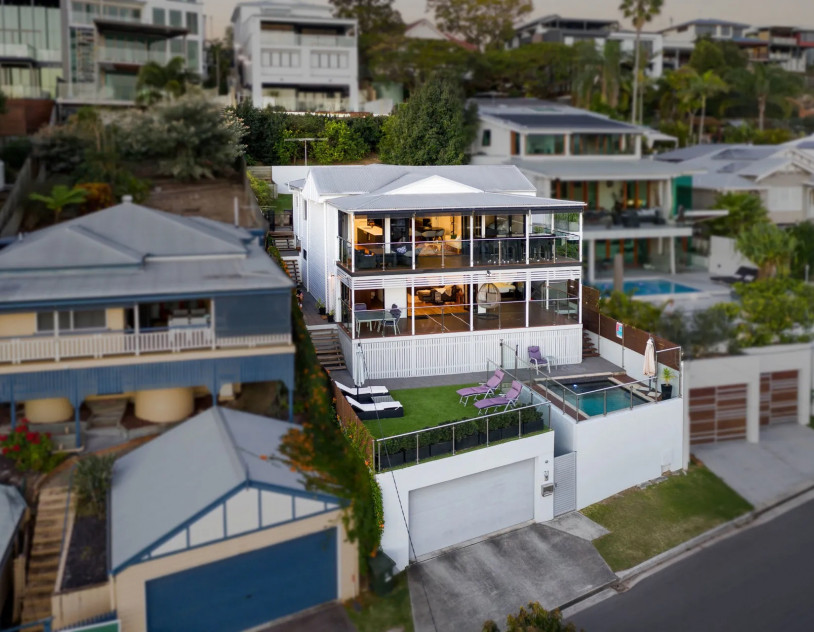 Elevated above Brisbane with sweeping 180 degree views across the city skyline and the iconic Story Bridge, Altitude delivers a striking, light filled setting designed for impact. Defined by its vantage point and seamless indoor outdoor flow, this two level residence offers a highly versatile backdrop for film, photography and events.