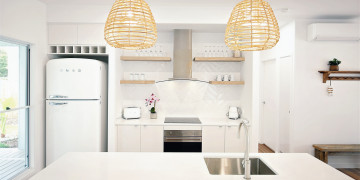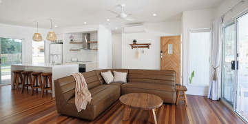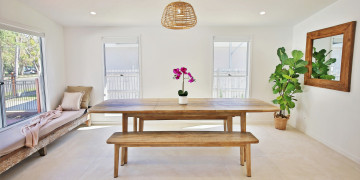 Inside, bright open spaces, crisp white walls, and natural timber finishes create a fresh and versatile environment. Thoughtful styling and soft coastal tones make every angle camera ready — perfect for film, photography, or branded content that calls for an authentic seaside aesthetic.