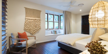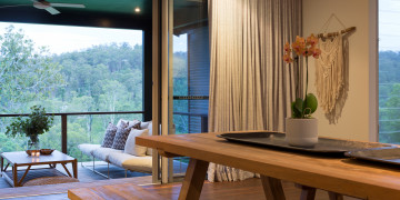 This luxurious hideaway, set on 10 private acres with stunning views of Moggill State Forest, is an expansive retreat-style location is made up of 7 large renovated buildings that were originally built as army barracks in 1941 for a US Army Base at Wacol, called Camp Columbia. Relocated to the site several years ago, they have been beautifully restored to a high quality finish, retaining many interesting features, such as the oiled original hardwood flooring throughout. Inspired by nature and yoga, the spaces have been thoughtfully designed to create a feeling of peace and tranquility throughout making this a perfectly serene backdrop for your next shoot or production.