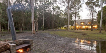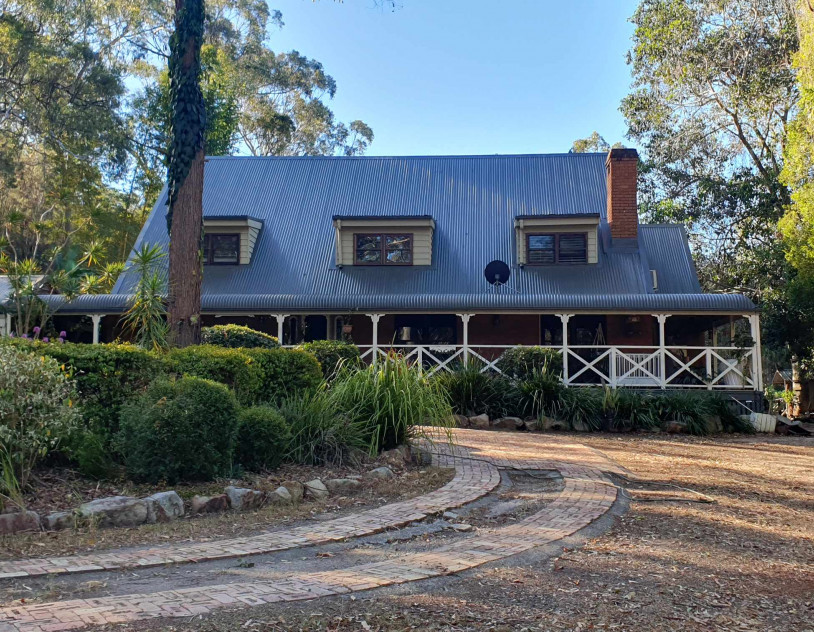 Nestled on 7 sprawling acres, Hunters Wood offers an idyllic setting for production teams seeking a versatile and picturesque backdrop. The property boasts three serene dams surrounded by lush bushland, creating an atmosphere of tranquility and natural beauty. As you drive down the meandering driveway, flanked by handmade wooden sculptures, you'll arrive at a circular driveway that leads to the charming homestead.