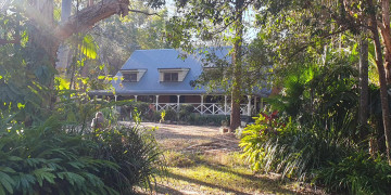 Outdoors, the property is teeming with character. The main dam features a deck (currently in need of renovation), while the backyard includes open spaces, chicken coops, and a carport. A rainforest-like grove of closely planted trees beside the house adds a whimsical and secluded feel to the setting. At the end of the street, the waters of Moreton Bay beckon, adding an extra touch of coastal charm, though access is private.