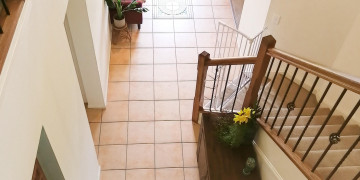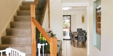 Set amidst beautifully landscaped gardens, the home features three inviting living areas, four spacious bedrooms, and three bathrooms, ensuring ample space for dynamic production setups. A standout element is the grand staircase, a statement feature that adds a sense of drama and refinement—perfect for capturing impactful visuals.