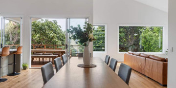 Lumen is a beautifully renovated two-storey Queenslander, nestled in a lush Bayside suburb and designed to celebrate light, space, and serenity. This warm and welcoming home features soaring ceilings, expansive windows, and a leafy green outlook that fills every room with natural light.